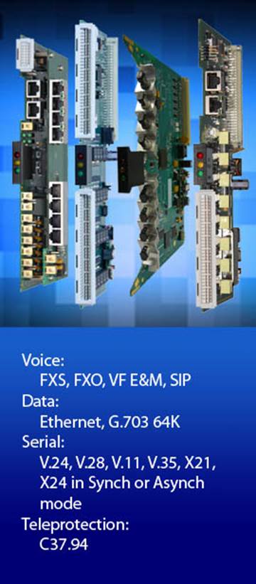 Low speed serial data channel cards that support V.24 and X.21 type interfaces as well as G.703/64K interfaces are also available. Tele-protection applications are supported by the C37.94 channel card. These channel cards can be used as direct replacements for NSN’s Dynanet channel cards.
