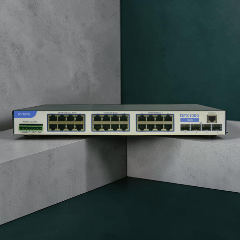 The Avara DFX1000 provides Switched Ethernet, E1 and Serial data interfaces for transmission over optical fibre at gigabit transmission speeds. For existing PDH networks that require a cost-effective upgrade to support gigabit Ethernet speeds, the DFX1000 provides an effective solution. Designed to provide a reliable solution that can withstand the high temperatures and harsh environments typically found in electricity substation and rail environments. The DFX1000 is fully manageable via SNMP, HPOV, HTTP and TELNET, or CLI. The DFX1000 can operate in point to point and loop network topologies.